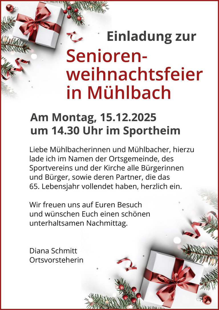 Liebe Mühlbacherinnen und Mühlbacher, hierzu